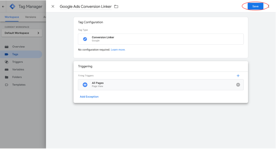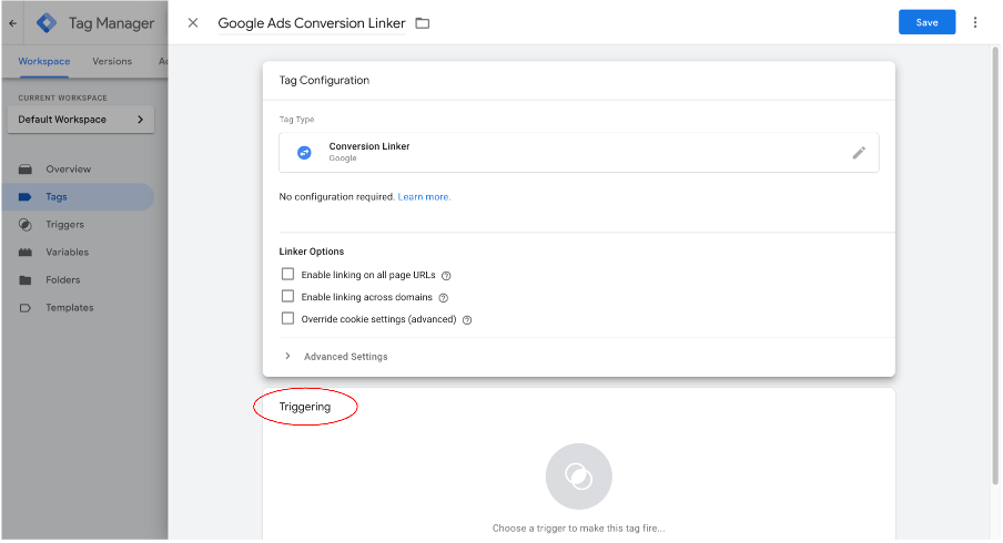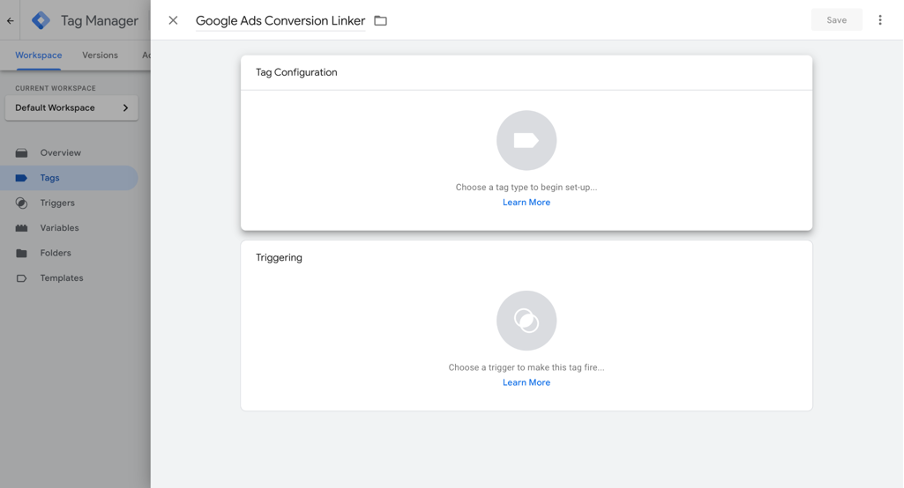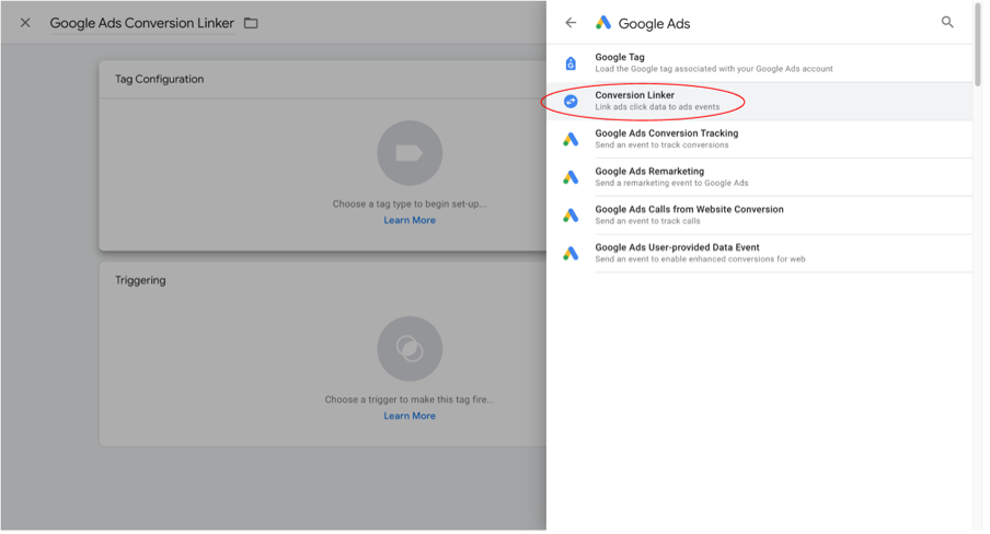 Adding a Google Ads Conversion Linker tag using Google Tag Manager