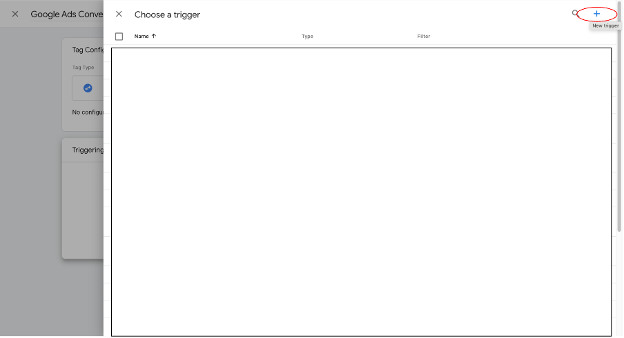 Step 6: Select the blue plus sign in the top right corner to create a new trigger.