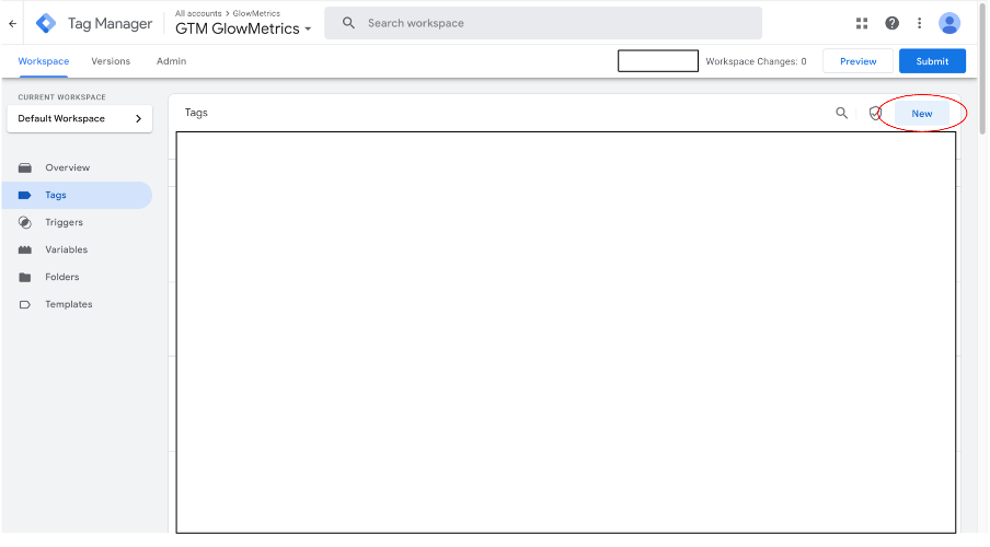 Step 1: Open Google Tag Manager in the container you want to track, make sure you’re in the “Tags” tab on the left and click “New”.