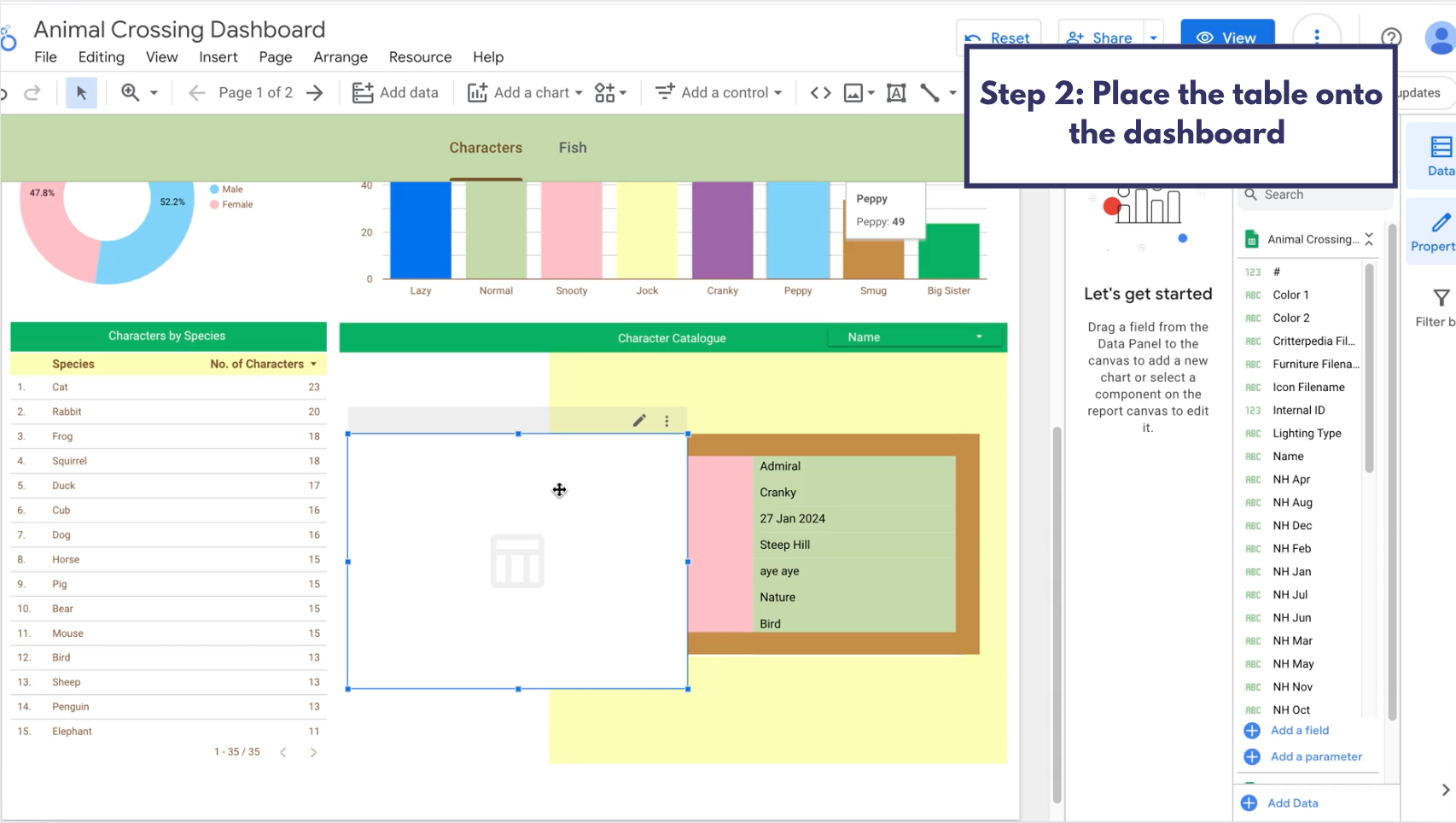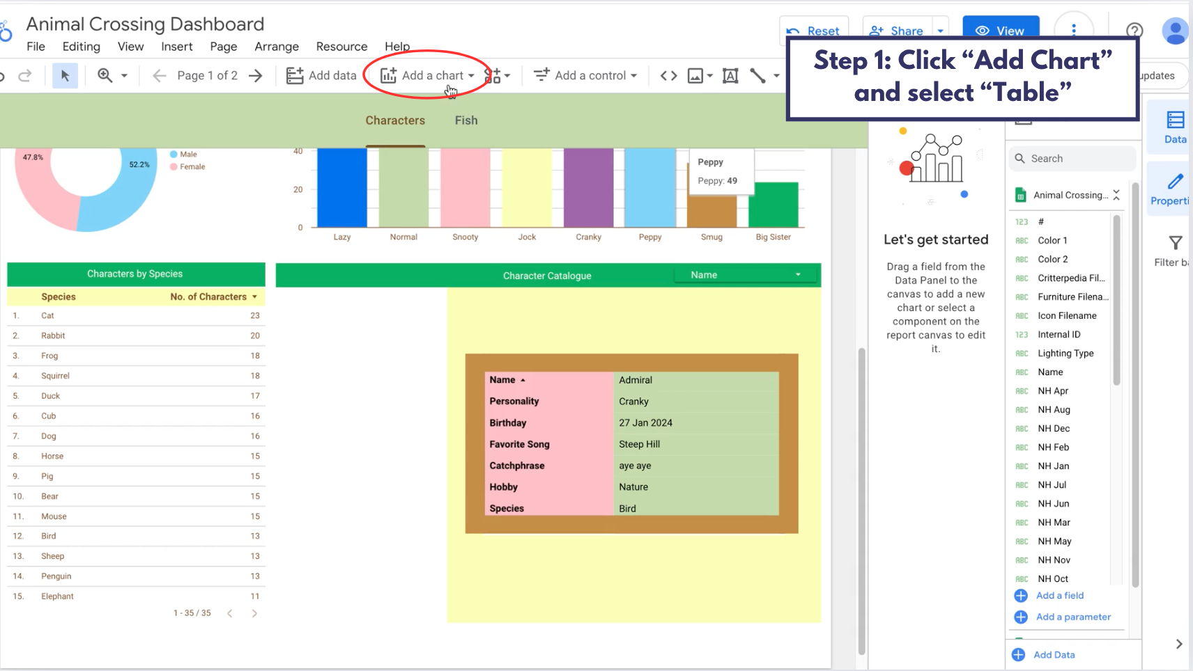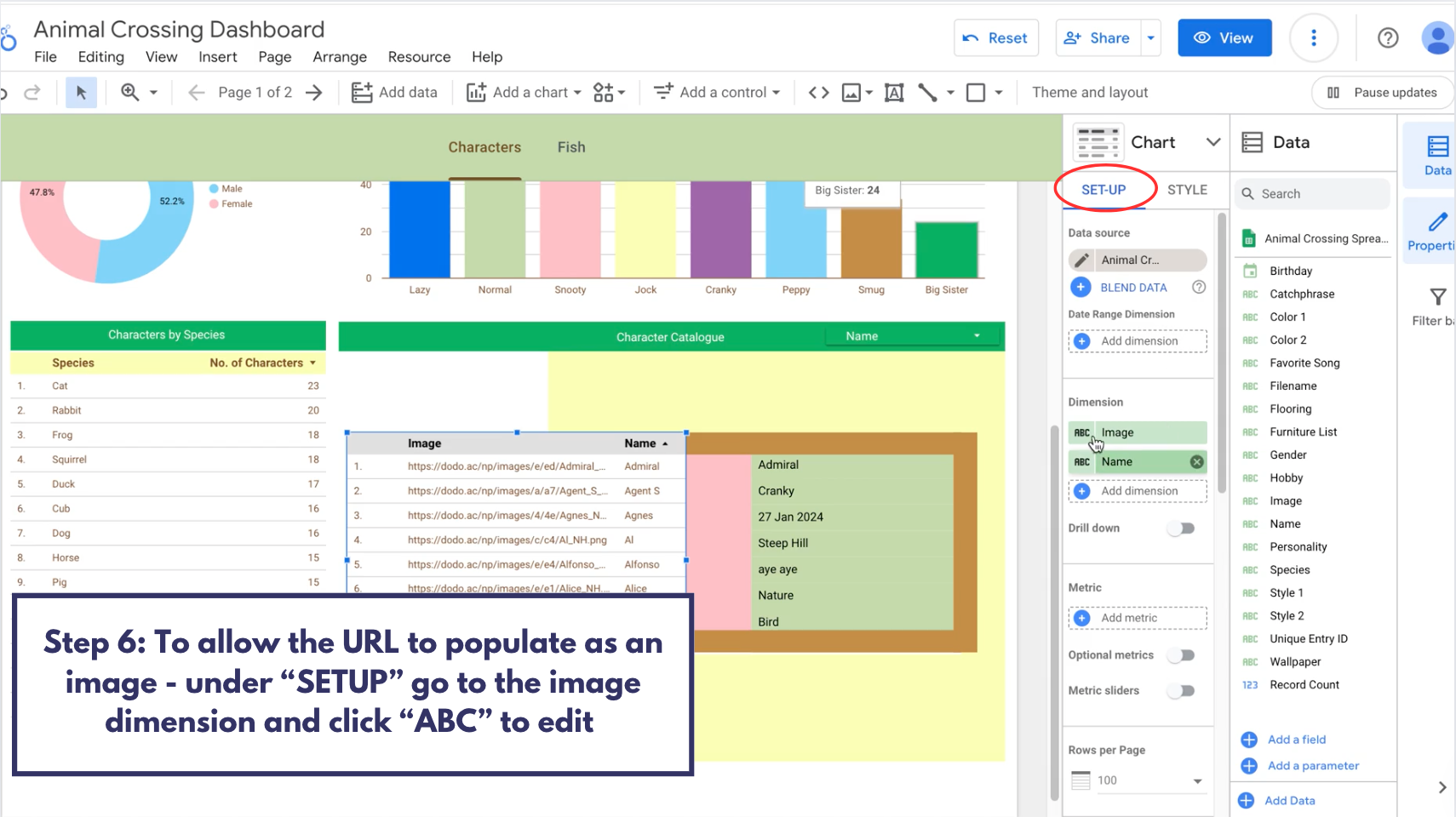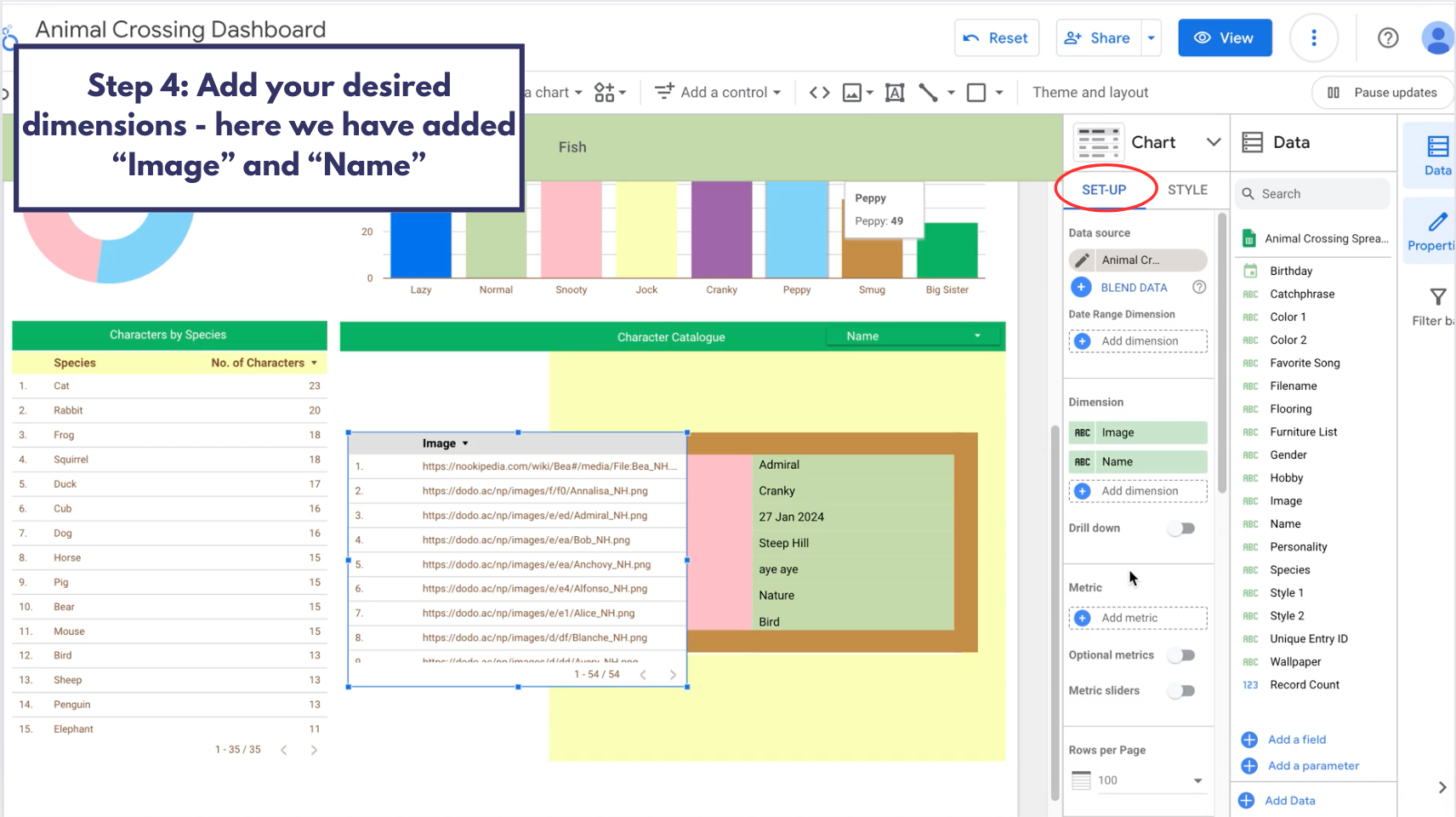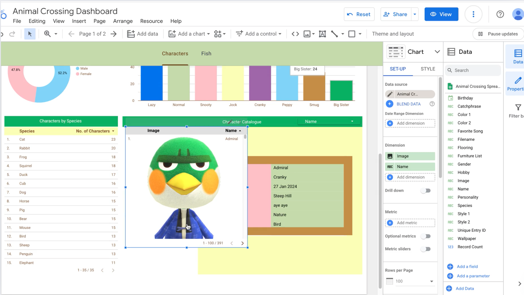 Looker Studio offers a powerful way to visualise and analyse your data. But what if you want to go beyond numbers and charts and include images? Looker Studio allows you to incorporate images directly into your reports as a data source, adding a whole new dimension to your storytelling. Here we have used it as part of a “Character Catalogue” using Animal Crossing data available on kaggle.com, but there are so many use cases for this!