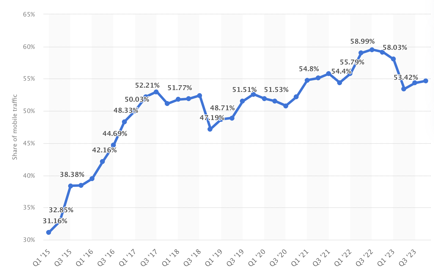 Mobile devices have become the primary way that many people access the internet. In fact, according to Statista, in 2023, 58.67% of all website traffic worldwide came from mobile devices (excluding tablets). This trend is only expected to continue in the coming years.